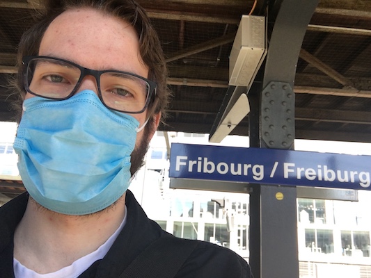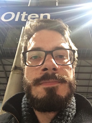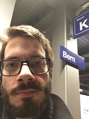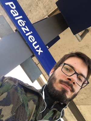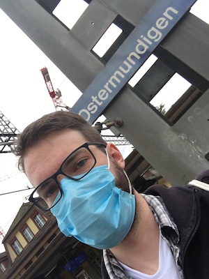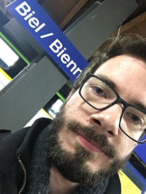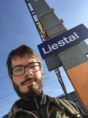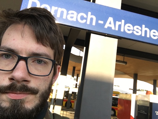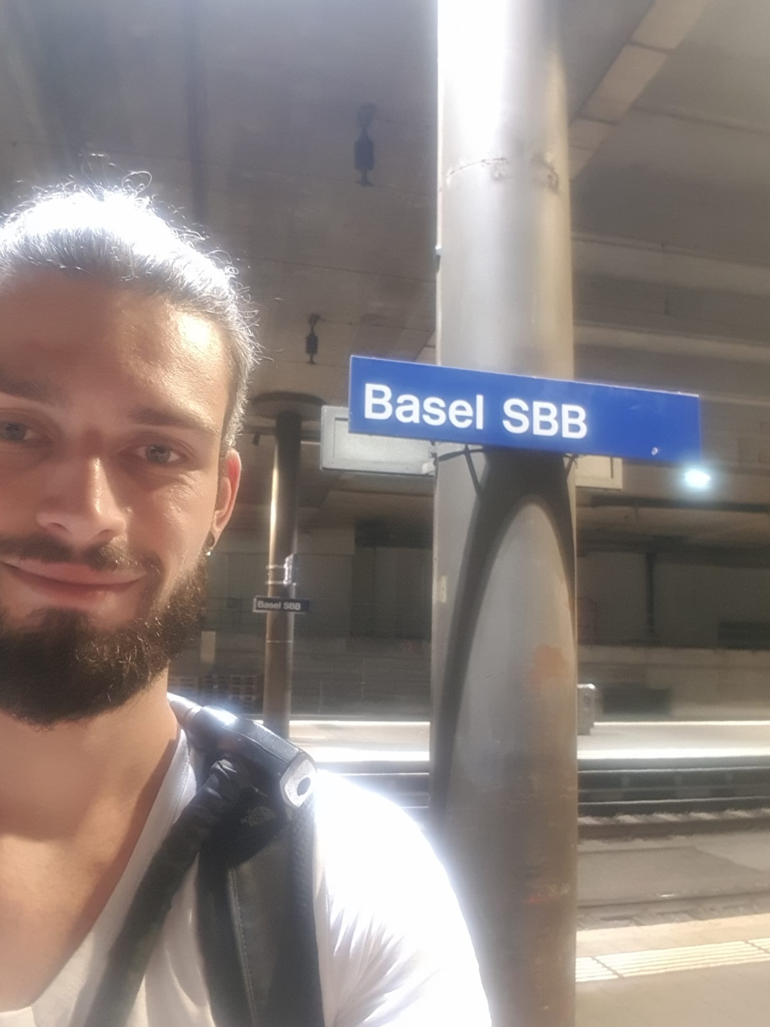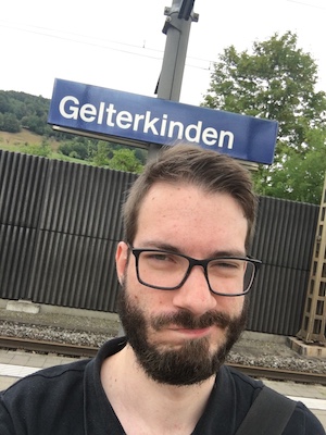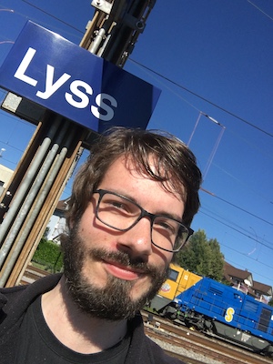 In einem Projekt ohne Sinn und Zweck sammelt Chris Selfies mit Bahnhofsschildern.