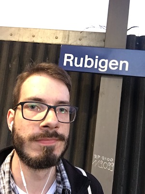 I stand am Peron und de Zug chunt. Es het no en andere det wo irgendwie Föteli macht. S nöchschte Bahnhofsschild isch chli wiit eweg, aber me erkennts zumindescht. Und es langt grad so zum ihzstiige. Es unerwartets Erfolgserläbnis.